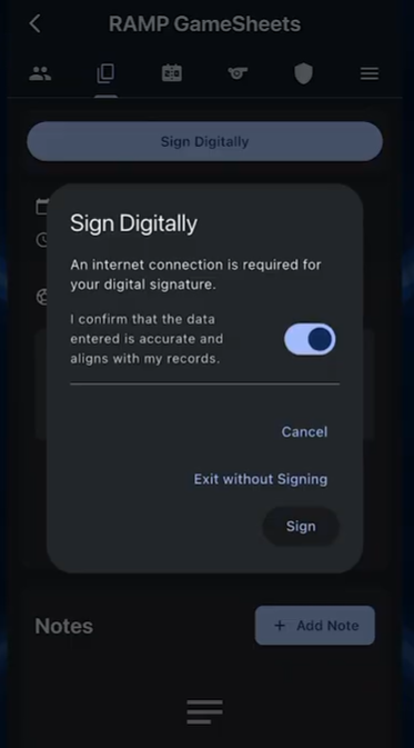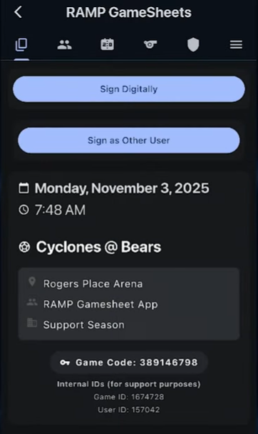 Additionally, from here, you can sign digitally, confirming that this information is correct, and sign off on the game. With the game now marked as completed, we'll now have access to an additional summaries page where we can see all the information of this game in one single page, being able to scroll through all of it in one location. Additionally, from here, you can always go back to the other pages to access the information on them as needed.