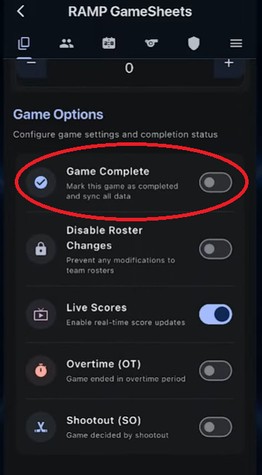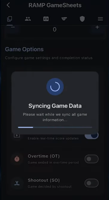 At this point the app will double check that all game information has been properly synced from this game back to the league.